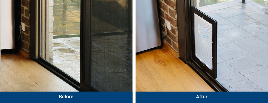 - Install the new glass with the pet door cut-out: Our glazier will remove your existing glass panel and install your custom-made toughened safety glass panel with the pet door inserted into it. They will secure the new toughened panel firmly in place to ensure durability and stability, taking the necessary steps to weatherproof the installation to prevent drafts, water leakage or unwanted pests from entering your home.
