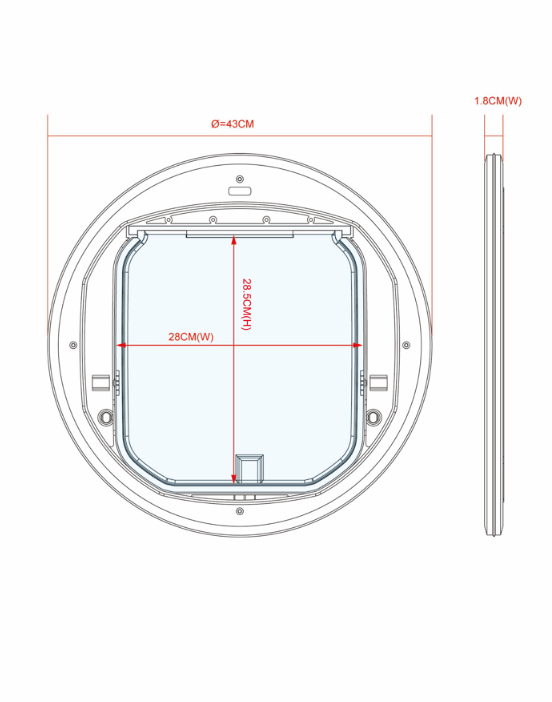 - Flap Width: 280mm / Flap Height: 288mm (Solid Clear Polycarbonate Flap)