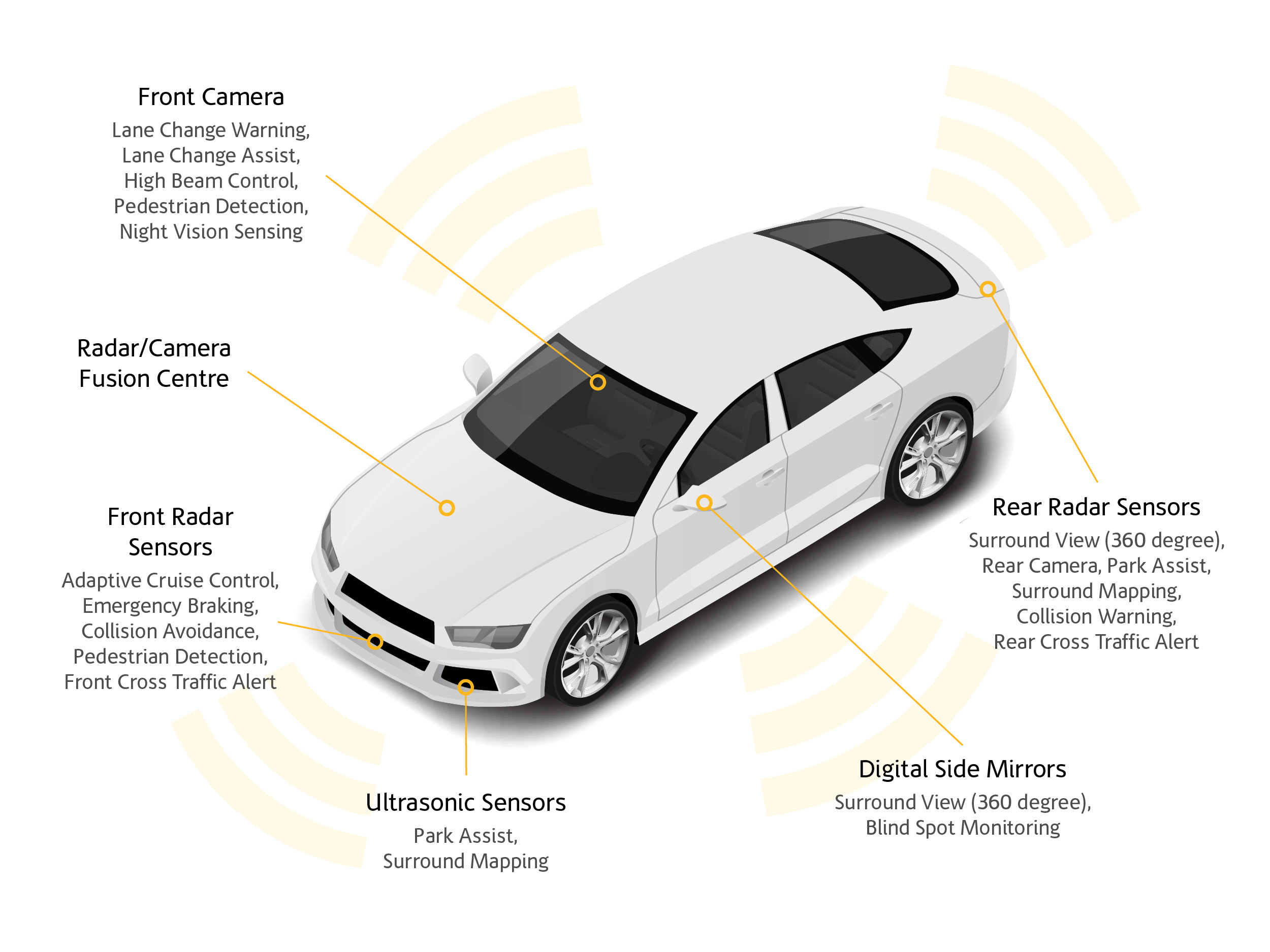 ADAS technology works by alerting the driver to potential hazards on the road, and in some cases, it can even take control of the vehicle if necessary. Through a complex system of cameras, sensors, radars and onboard computers, these systems are designed to supplement driver capabilities or correct driver error and help to reduce accidents, injuries and fatalities on our roads.